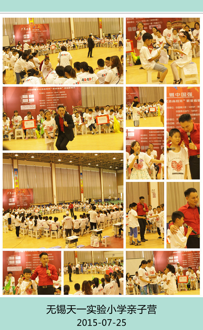 2015年05月24日、2015年07月05日,中国青少年(4R4P)责商学院先后两次举办江苏无锡天一实验小学《少年担当则祖国强——天一实验小学数字化责商教育》亲子训练营大型公益活动,同时开展了以《做一名优秀的无锡天一实验小学教师,从认知4R4P开始》为主题的300教职工培训讲座,有多家媒体跟踪报道。